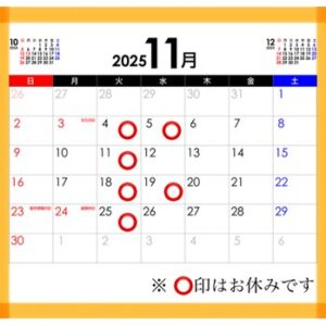 ということで(?)11月も1週間を過ぎてしまいましたが、今月の営業カレンダーをお知らせします。年末に向けて慌ただしさがピークになっていきます。12月に入ってしまうと時間の確保が今以上に難しくなる可能性が大きくなります。今のうちに歪みを整えて疲れを解消し、忙しさに対応できるカラダにしておきましょう♪